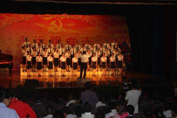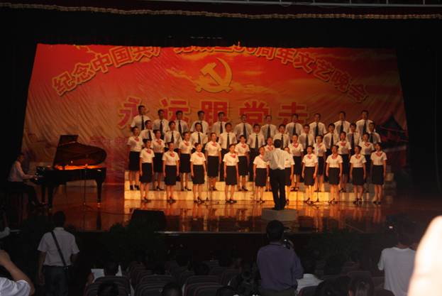 当晚,由我公司40名员工组成的合唱队演唱的《没有共产党就没有新中国》拉开了文艺晚会的序幕。演唱中,我公司员工精神饱满,深情演唱,充分展示特安呐人奋力拼搏、积极向上的精神风貌,为党的90岁生日献上一份诚挚的礼物。