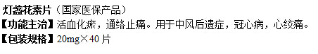 【功能主治】活血化瘀,通络止痛。用于中风后遗症,冠心病,心绞痛。