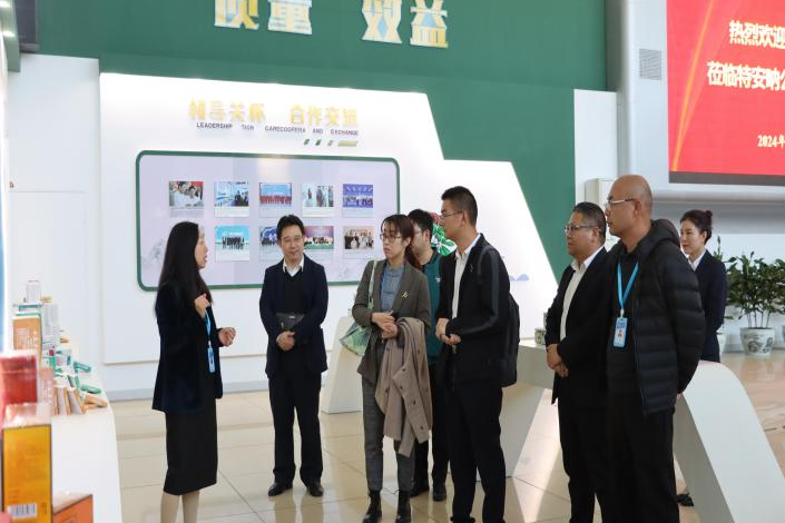 江鹏一行首先参观了特安呐公司展厅,了解了企业发展历程、战略目标、文化建设等情况,重点听取了“血塞通系列”和四个独家产品的介绍,对特安呐公司产品种类、产品质量给予高度认可。