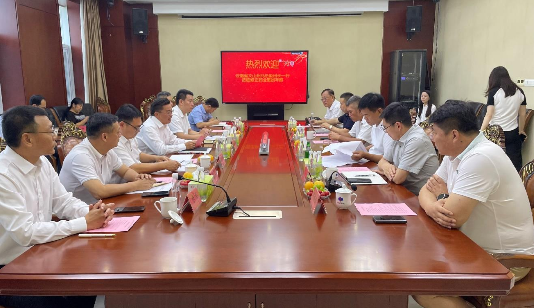 为加强中医药产业的交流合作,6月21日,文山州委副书记、州长马忠俊,文山州委常委、文山市委书记蒋俊一行赴北京修正集团考察交流。云南省绿色城更集团党委书记、董事长刘文平,三七科技党委书记、董事长、特安呐公司董事长黄波,三七科技财务总监杨静林,特安呐公司党支部书记、副董事长邹慧宁陪同考察并参加座谈交流。