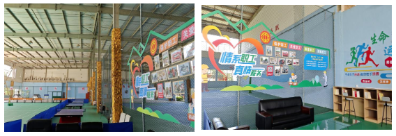 产业工人驿站按照“六有”标准进行建设,与公司职工运动场相融合,可开展大型体育竞技比赛,也可为职工提供篮球、羽毛球、乒乓球、气排球等体育活动,具备饮水、充电、体育运动、休息、急救箱、wifi、阅读等功能,为职工在工作之余提供了一个可以休闲的固定场所。
