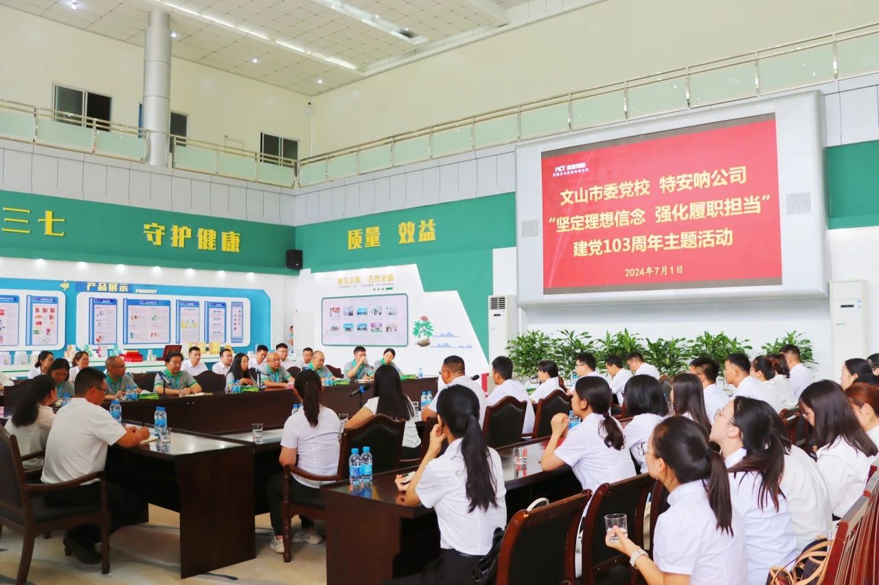 7月1日,为庆祝中国共产党成立103周年,弘扬伟大建党精神,特安呐公司与文山市委党校共同开展“坚定理想信念 强化履职担当”建党103周年党建联建活动。