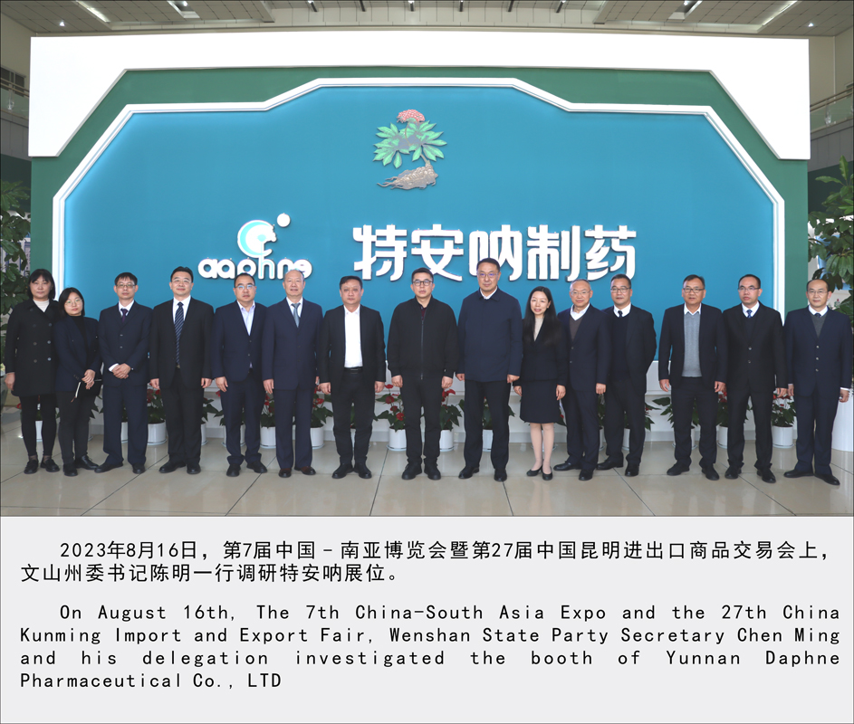 2023年8月16日,第7届中国-南亚博览会暨第27届中国昆明进出口商品交易会上, 文山州委书记陈明一行调研特安呐展位。