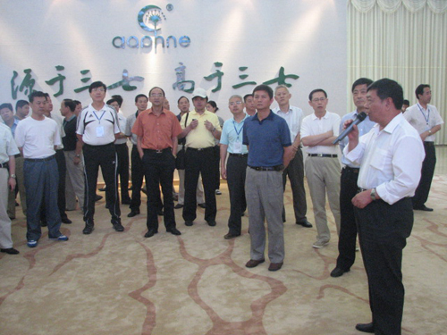 2008年7月31日上午八点,参加全国社会扶贫工作会议的领导一百多人在州委、政府领导陪同下,到公司进行调研。