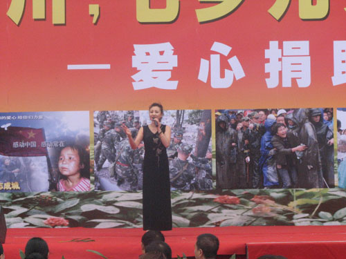 活动上,云南特安呐制药集团公司全体员工、文山州歌舞团、文山电视台记者、工作人员纷纷上台,把七乡儿女对灾区群众深深的祈福、同为中华儿女的深情厚义一一展现。特别是沈建、刘艳两位主持人和唐霞小朋友深情的诗朗诵《孩子,快,拉住妈妈的手》表达了灾区人民对在“5.12”地震中遇难小朋友的无限哀思、怀念,在场者无不为之动容,流下了滚烫的热泪。