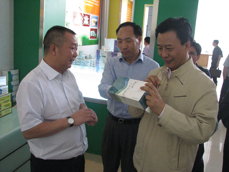 对公司的主导产品之一丹参益心胶囊,辛部长仔细观看说明,并详细了解该产品的主治功能、用法用量,并对该药品的疗效表示满意。