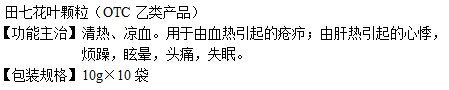 【功能主治】 清热、凉血。用于由血热引起的疮疖;由肝热引起的心悸,烦躁,眩晕,头痛,失眠。