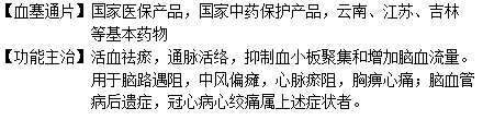 【功能主治】活血祛瘀,通脉活络,抑制血小板聚集和增加脑血流量。