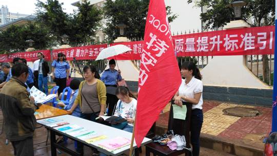 In the morning on September 20, 2015, the activity of “Quality Month” in 2015 for establishing the “Demonstration Area of Famous Brand in National Panax Notoginseng Industry” was implemented in Wenshan Panax Notoginseng Industry Park. The major purposes of this activity were strengthening the quality awareness of the society, participating in the construction of a powerful quality-focused country and creating a social atmosphere of the government, the enterprises, the society and all the people advocating quality. This activity was aimed at the quality promotion by the society and supplementing the slower development speed with the promotion of the quality. The development of the economical society would be pushed into an “Era of Quality”. The topic of the activity was “Pacing into the Quality Era and Constructing a Quality-oriented Powerful Country”. Daphne participated in this activity. The exhibition staff distributed the promotional booklets and product manuals to the public.