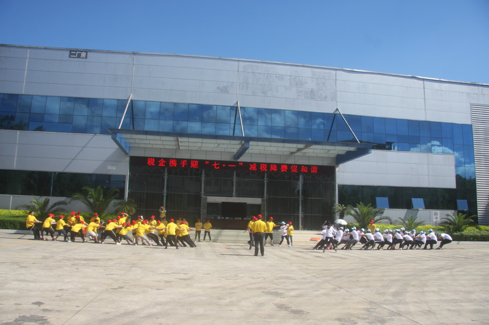 为促进税企沟通交流、营造和谐的税企关系,6月21日下午公司党支部与文山州税务局第七党支部在公司开展税企携手迎“七·一”减税降费促和谐联谊活动。参加活动人员在展示厅听取讲解员介绍公司基本情况,观看了公司的宣传片。州税务局通过税收宣传片卡通人物“小税”,向公司宣传了相关税法及纳税知识,州税务局第七党支部的党员还向特安呐公司党员赠发了纳税知识宣传小册。随后组织开展了趣味比赛活动,这次的趣味比赛有三个项目,分别是拔河比赛、毛毛虫竞赛、无敌风火轮。对于这三个项目公司人员信心十足,州税务局的参赛人员也不甘示弱,两支队伍在赛前的热身赛中就擦出了友谊的火花。比赛过程,两支参赛队密切协同,你追我赶,不时迎来阵阵的加油声和欢呼声。通过激烈角逐,税务队在毛毛虫竞赛中获胜,拔河比赛和无敌风火轮则是公司队获胜。税企携手迎“七·一”活动在和谐友谊的气氛中落下帷幕。