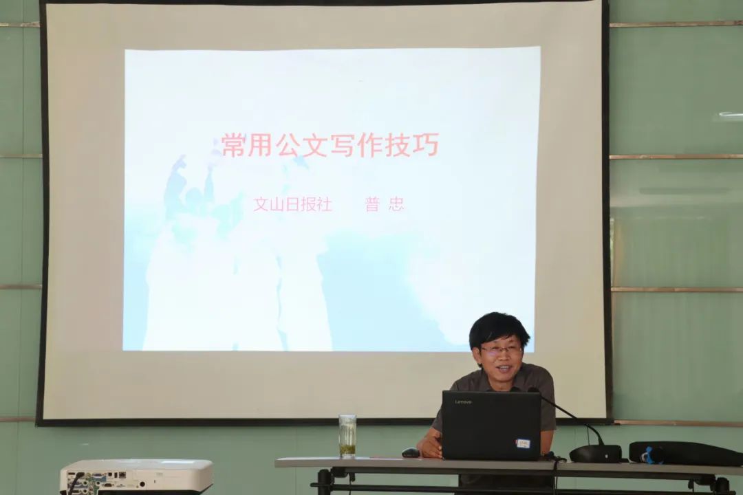 为进一步提升公司各层级管理人员公文写作水平、拓宽写作思路、提高写作效率,着力锻造一支提笔能写、问策能对、压担能挑、团结协作的复合型队伍。近日,特安呐公司组织开展一期公文写作知识专题培训,培训邀请文山日报社副主编普忠老师授课,公司领导班子、职能部门人员、车间兼职宣传员共计70余人参加。