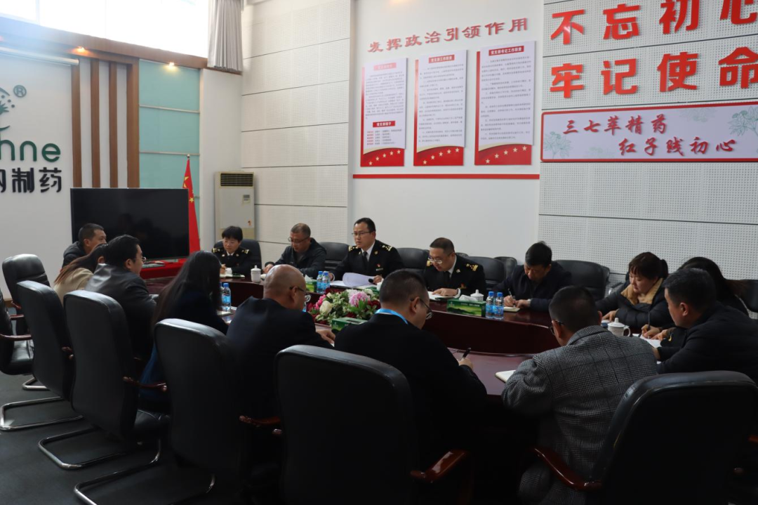 12月19日,天保海关副关长何立、文山州市场监督管理局副局长杨福春一行到特安呐公司走访调研,实地了解企业外贸进出口状况和问题困难,帮助企业推进原料和产品进出口业务。文山市商务局局长李春全,公司党支部书记、副董事长邹慧宁,总经理刘加强以及华信三七、恒源公司等部分企业代表参加座谈。