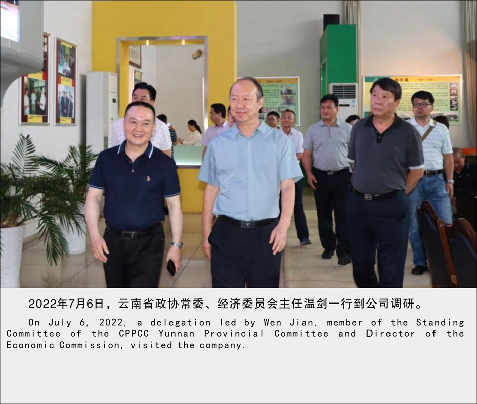 2022年7月6日,云南省政协常委、经济委员会主任温剑一行到公司调研