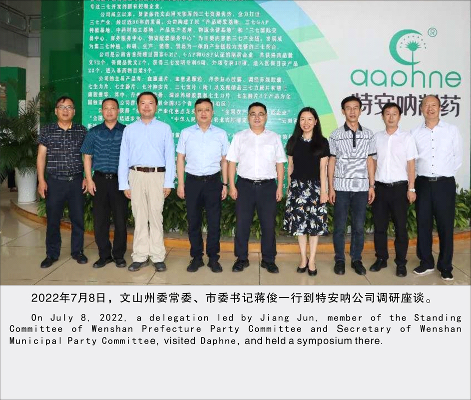 2022年7月8日,文山州委常委、市委书记蒋俊一行到特安呐公司调研座谈